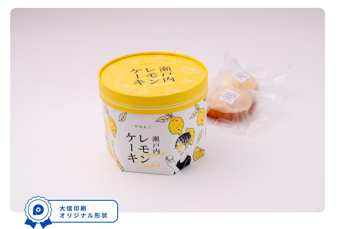 お持ちしたワンタッチ紙管の形状がとても可愛いと気に入っていただき、そのときに持ち上がっていたレモンケーキの企画に採用いただきました。