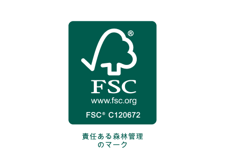 2014年5月取得。FSC®認証マークを印刷物に表示することで、国際的な規格をもとに、適切に管理されていると認められた森林から生産された木材や、その他適 切な森林資源の使用につながる原材料を使用した製品であることを、消費者の目に見える形で表示することができます。