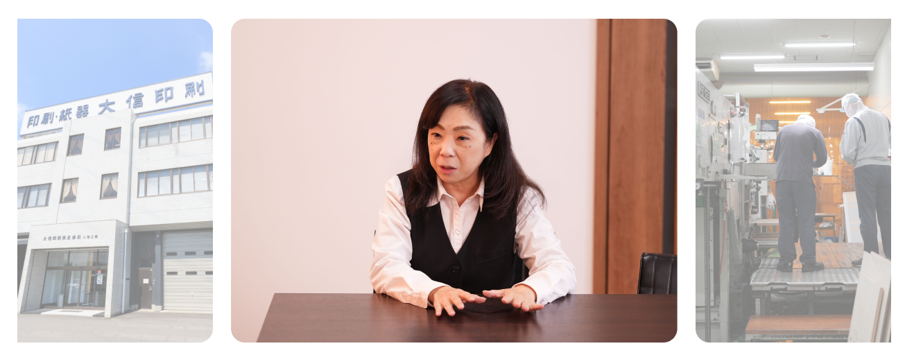 元々は派遣会社でいろんな会社さんで働いてて、切り替えのタイミングで大信印刷を紹介されて。(契約社員として)働くうちに正社員にならないかって言われて。ここの会社を辞めるつもりはないし、お給料もらう先が変わるだけだからどっちでもいいですって(笑)最初は事務員で生産管理の業務のサポートをするっていう。今も続けてやってますけど、加工依頼書の発行を行ってくださいっていうのが主な業務内容でした。