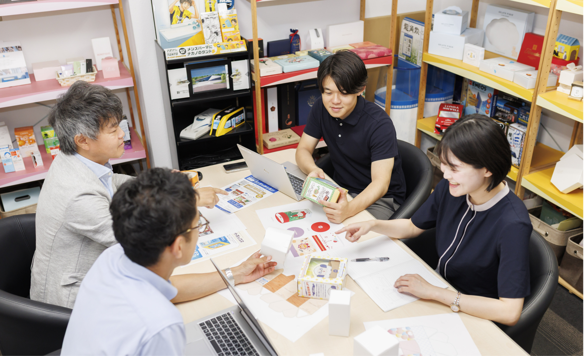 ます。そうして自分の携わった箱が、いつも行くお店に並ぶ感動を味わいま