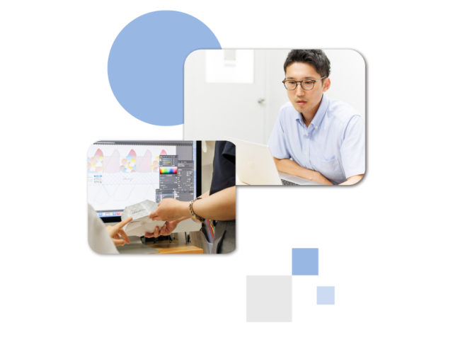 | 業務内容 | パッケージや販促ツールなどの提案をお任せします。既存顧客がメインで、完成した印刷物を営業するのではなく、企画から携わることができるのが大信印刷の営業の特徴です。基本業務に慣れたら、新規顧客へのアプローチも行います。楽しく継続できるよう、新規活動は2人チームで、アイデアを出し合ったり、戦略を立てたりして活動します。 |