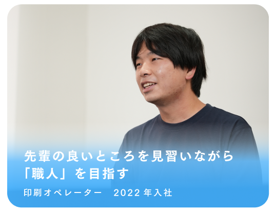| 業務内容 | ①印刷機オペレーター パッケージのデザインを印刷する、印刷機のオペレーションをお任せします。まずは紙のセットなど簡単なアシスタント業務からスタート。5年目には、国家資格である1級印刷技能士の取得に挑戦することができ、取得後には機長として業務にあたっていただきます。印刷オペレーションの一番のポイントは、見本に色を合わせること。経験と感覚を必要とする技術職ですが、厳しい上下関係はなく、先輩に声をかければいつでもアドバイスをくれる職場です。 ②製函機オペレーター 印刷物に糊付けをし、最終的な箱の形に仕上げる工程です。まずはOJTで先輩の作業を見て覚えることからスタートし、ゆくゆくは製函機のオペレーションをお任せします。異なる1つ1つのパッケージの、折りや糊付けの箇所に合わせて機械をセッティングしていきます。キズ、シワ、破れ、糊のはみだしなどに気を付けながら、正確にスピーディーに貼れるよう、製函機に様々な用途のパーツを取り付けていきます。箱と機械の構造を理解していないとできない技術職です。 |