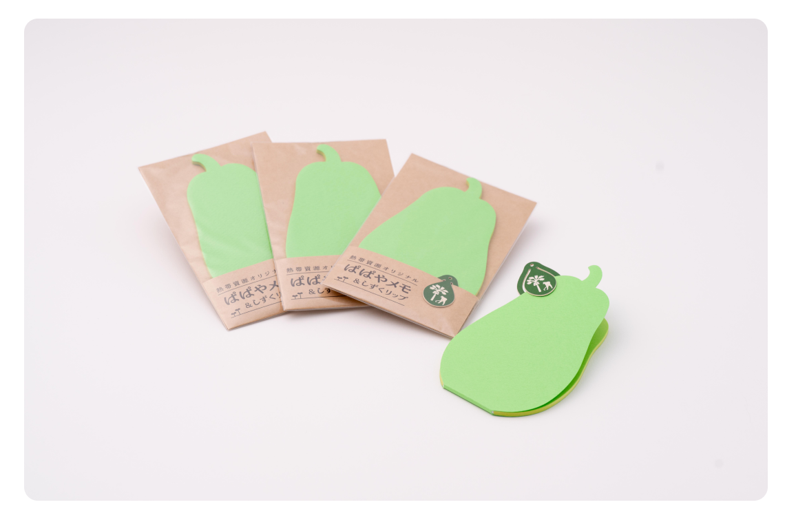 「農=自然と共生する生産活動」を理念とし、農業や食品製造の事業を展開する農業生産法人株式会社熱帯資源植物研究所。毎年、お客様へのプレゼントとして作成されているオリジナルグッズに、オリジナルのメモ帳とクリップを採用いただきました。