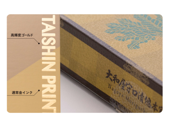 通常の金インクよりも輝度感が高く、重厚感を演出することができます。