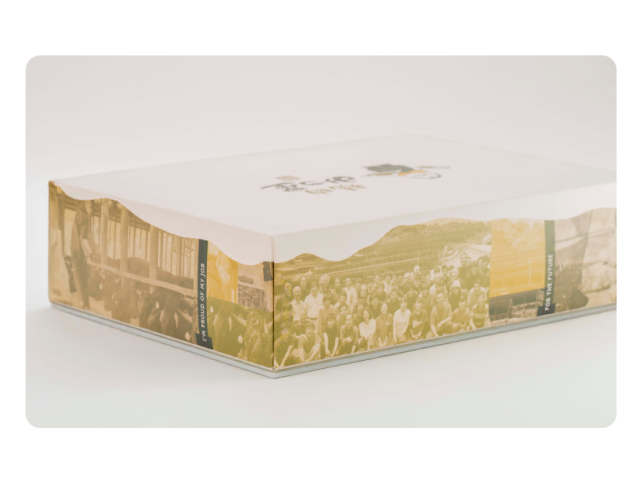 側面には複数の写真が繋がるようにレイアウトされており、ストーリー性を感じさせるデザインになっています。
