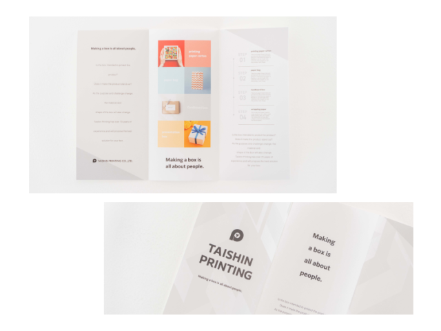 折り方は二つ折りや三つ折り、Z折りなど様々で、リーフレットのデザインや見せたい情報の順番に合わせて選定します。