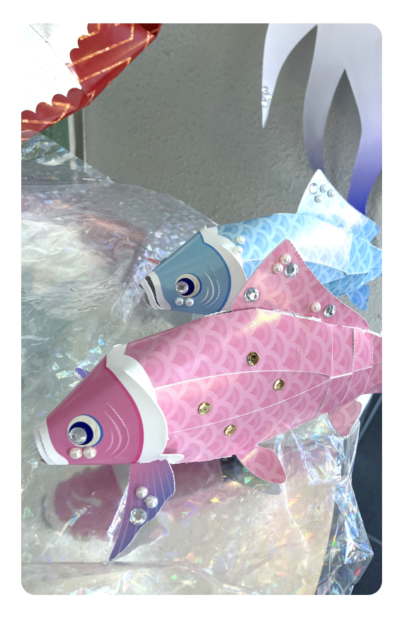 こちらも新たな取り組みとして、デザイン学校の授業の一環で学生さんにエントランスの玄関飾りを作成いただきました。