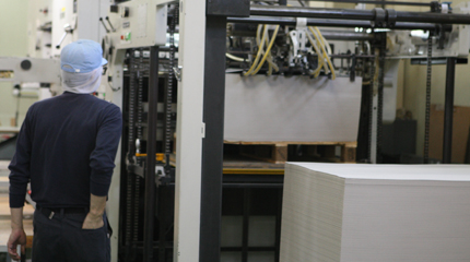 地域最大級の打ち抜き機のほか、3台の機械で様々なサイズの加工に対応します。