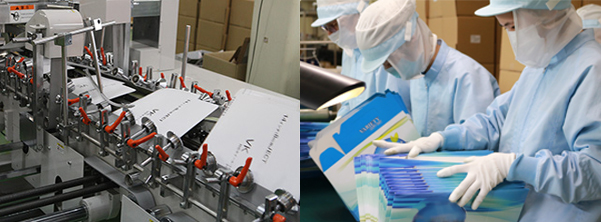 お仕事の依頼から、納品まで。大信印刷では、パッケージを作る一連の工程を、社内一貫生産によるムダのない1本の生産ラインで結んでいます。